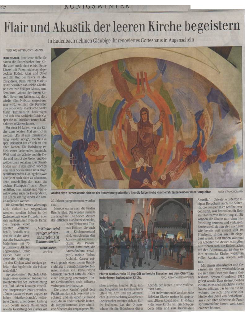 Vorheriges Bild Nächstes Bild Artikel GA 28.03.2017 Leere Kirche Eudenbach Artikel GA vom 28.03.2017 Views: 52