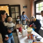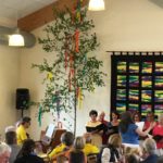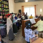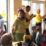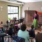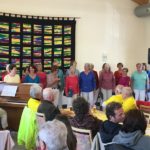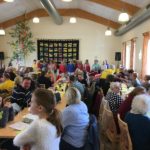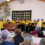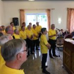Der Männerchor brachte sich mit bekannten Mailiedern aber auch neuem Liedgut ein: erstmals erklang der amerikanische Folksong „Aura Lee“, vom Mädchen mit den goldenen Haaren und ins „Stääne“ von der Kölner Gruppe Klüngelsköpp stimmten die Gäste begeistert mit ein. Special Guests des Festes aber war der Damenchor aus Bad Honnef mit der Chorleiterin Irina Brochin. Sie hatten einen bunten Strauß von Melodien mitgebracht darunter „Ännchen von Tharau“ von Friedrich Silcher, arrangiert von der Dirigentin oder das peppige „Lollipop“von Ross und J. Dixon. Besonders angetan waren die Zuhörer aber von der fantasiereichen Verkleidung der Damen im 2. Teil als alte Juffern mit entsprechender Choreografie, ein toller Beitrag zum Gelingen des Festes!