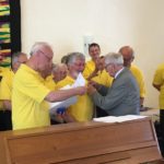 Claus Scheel, Vorsitzender der Gruppe Siebengebirge im Chorverband Rhein-Sieg, hatte besonderen Grund, in den Oberhau zu kommen. Er ehrte verdiente Sänger: Wolfgang Kwoczalla für 30 Jahre Arbeit im Vorstand des Männerchores wurde ausgezeichnet mit der Plakette in Gold des Chorverbandes NRW. Er hat sich große Verdienste in den Funktionen als Schriftführer (über 15 Jahre) (Festchronik zum 100. Bestehens des Chores geschrieben) und über 13 Jahre als Kassierer erworben. Ekkehart Klaebe für 40 Jahre Mitgliedschaft im Männerchor ausgezeichnet mit der Anstecknadel/Brosche mit Urkunde des Chorverbandes NRW . Er war nicht nur 40 Jahre Mitglied sondern viele Jahre im Vorstand Schriftführer und ist Cheforganisator einer Reihe von mehrtägigen Chorfahrten. Peter Ströbele für 25 Jahre Arbeit als Notenwart wird ebenfalls mit der Plakette in Silber des Chorverbandes NRW ausgezeichnet.Peter ist ebenfalls aktiv im Chor als Cheforganisator der Chorwanderungen am Tag der Einheit und zeichnet jedes Jahr verantwortlich für die schmackhafte Maibowle!