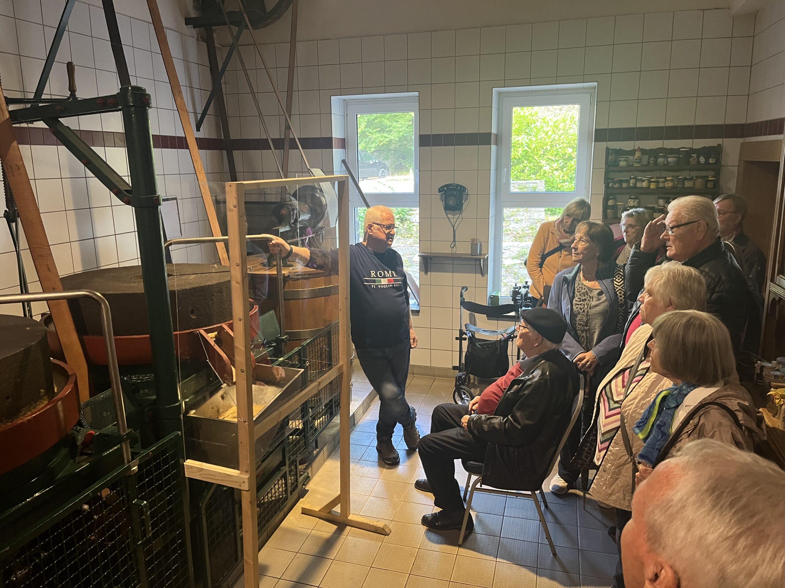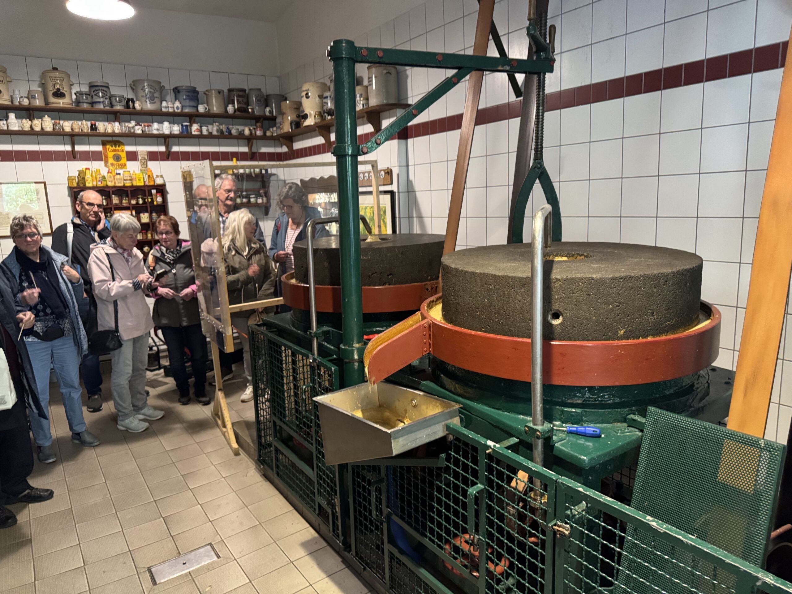 Die historische Senfmühle in Monschau, das erste Ziel der Chorfamilie bei ihrem Ausflug Ende September, kann tatsächlich mit 24 Senfgeschmacksrichtungen aufwarten, so dass es praktisch zu jedem Gericht die rechte Würze gibt. Die Redewendung stammt aus dem 17. Jahrhundert, als Senf ein wertvolles Gewürz war und oft zu Gerichten hinzugefügt wurde, um sie aufzuwerten, auch wenn es nicht immer passte. So ist es auch mit ungefragten Wortbeiträgen. In einem lebhaften und informativen Vortrag erfuhr man alles über die Senfherstellung bis hin zur Verkostung. Auch die über 100 Jahre alte Senfmühle wurde eigens angeworfen. Kein Wunder, dass man so auf den Geschmack gekommen war und reichlich Leckereien mit nach Hause nahm.