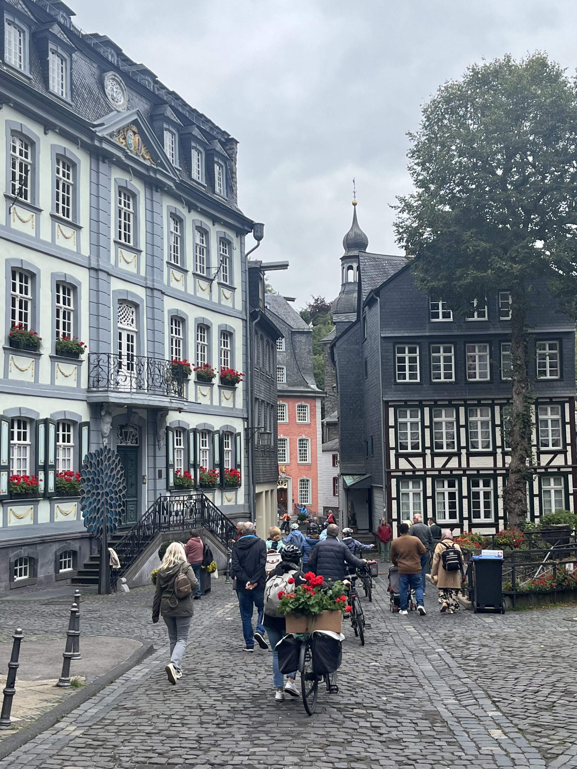 Na ja und Monschau ist ohnehin eine Reise wert. Also hatte man eine Stunde eingeplant, um diese sehenswerte kleine Stadt mit ihren gepflegten verschachtelten Fachwerkhäusern und ihrem historischen Charme zu bestaunen. Auf die Idee waren auch viele andere Besucher gekommen, so dass es in der Stadt nur so wimmelte von Touristen.